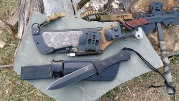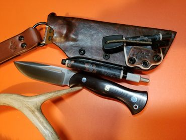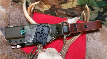 This section is dedicated mostly to our "Leather Elite Series" of custom sheaths, as well as some other "Big Rigs", There's much to see here. If you still want more info and to see more, Subscribe to our youtube channel, Follow us on Instagram, Friend Doug Wilson on Facebook, and Join "THE CLYHCK" our popular, adventure outdoors facebook forum (all things wilderness, knives, bushcraft etc...). OUR LEATHER ELITE Sheath Systems are one of a kind, very unique, and bombproof. Full Grain Leather (oiled/waxed) over a Fully functioning kydex sheath system. Truly The best of both worlds, for those who love the look, smell, and feel of traditional leather, but still want the benefits, superior retention, utility, and safety of a kydex sheath. There are also some more comprehensive sheath systems in this gallery as well. Our highly unique LEATHER ELITE SHEATH SYSTEMS are built to last, and you will NOT find them anywhere else. You can bet THE JONES' DON'T HAVE ONE!