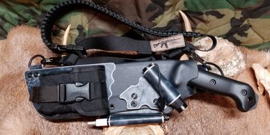 When Ordering a fully custom built sheath system from YHCK It basically goes like this. A client gets in contact with us after going through some of the galleries, videos, and site pages so that they can find exactly what they want. Then, the client initiates a conversion by text and we go over exactly what he/she is looking for, We give our recommendations if that works for you. A Rig can cost anywhere from $75 to over $500 for a fully decked out Rig. The Rig in this Picture is between $350-$400 and does include the sling. The best way to reach us is TEXTING #443-315-6033, We love the work that we do. We endeavor to bring the highest quality gear to every client we serve.